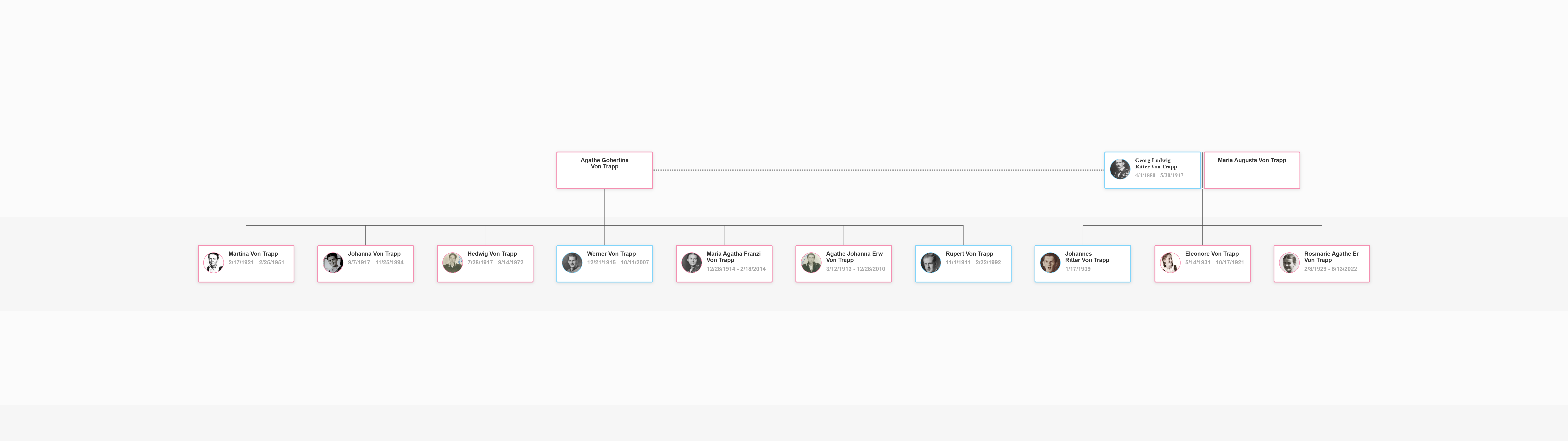 Before you begin, decide how far back you want to go. Some family trees focus only on immediate relatives, while others trace ancestry back several generations. The Von Trapp family tree, for example, includes: